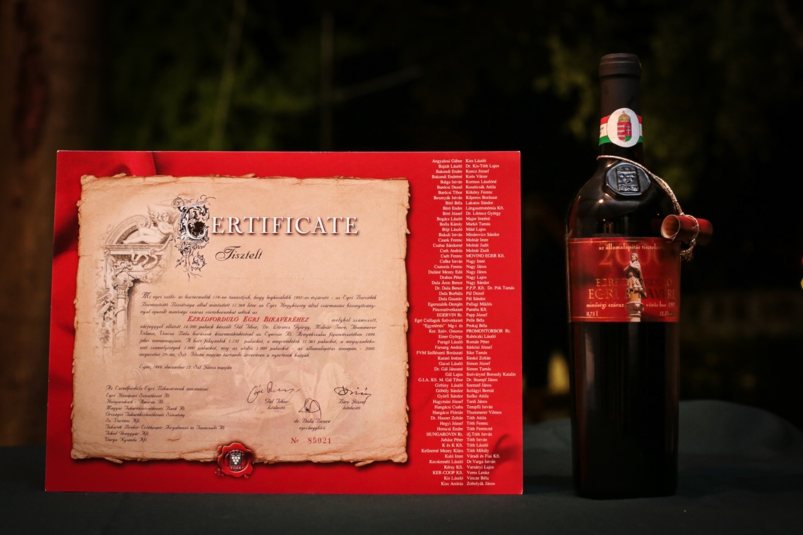 Még 1998 decemberében hirdették ki, hogy 119 termelő 11 ezer 369 liter borából elkészült az Ezredforduló Egri Bikavére, amelyre ettől kezdve fogadtak el egy 12 ezer 500 palackos előjegyzést. A díszes, tokodi palackokba töltött bort először az 1999-es borünnepen mutatták be, amely utolsó 200 palackját a XXI. Egri Bikavér Ünnepen vásárolhatják meg a borkülönlegességek kedvelői.