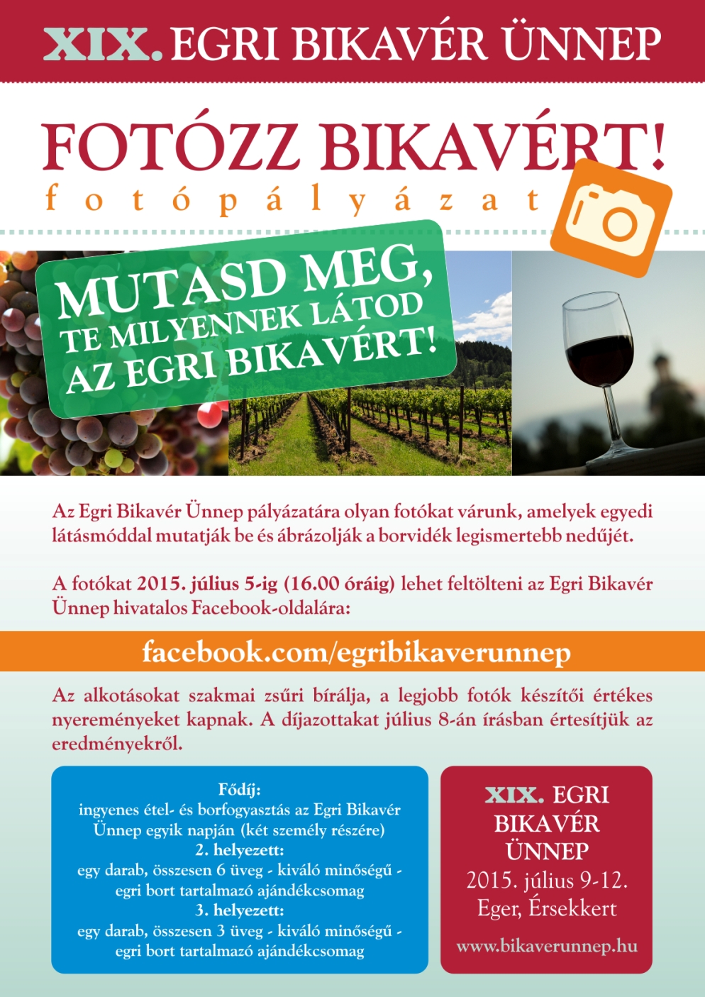 A fotókat július 5-ig (16.00 óráig) lehet feltölteni az Egri Bikavér Ünnep hivatalos Facebook-oldalára. Az alkotásokat szakmai zsűri bírálja, a legjobb fotók készítői értékes nyereményeket kapnak. A díjazottakat július 8-án írásban értesítjük az eredményekről.